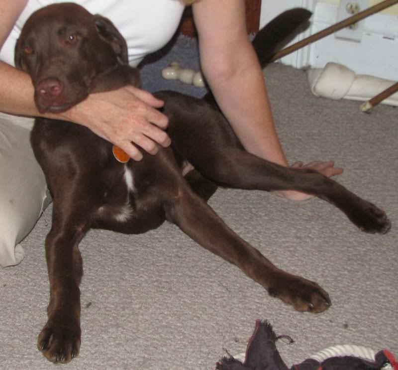 So apparently we have a new puppy. Her name's Hayley, and she's a chocolate Lab about 3 mo. old. Incredibly hyperactive, too. I'll take a picture of her when she's not asleep and I'll upload it then, but she is adorable. I already have another dog, Katy (black lab, 10 yrs old, give or take) and four cats. You know that movie "Animal House?" We're the more literal version. |